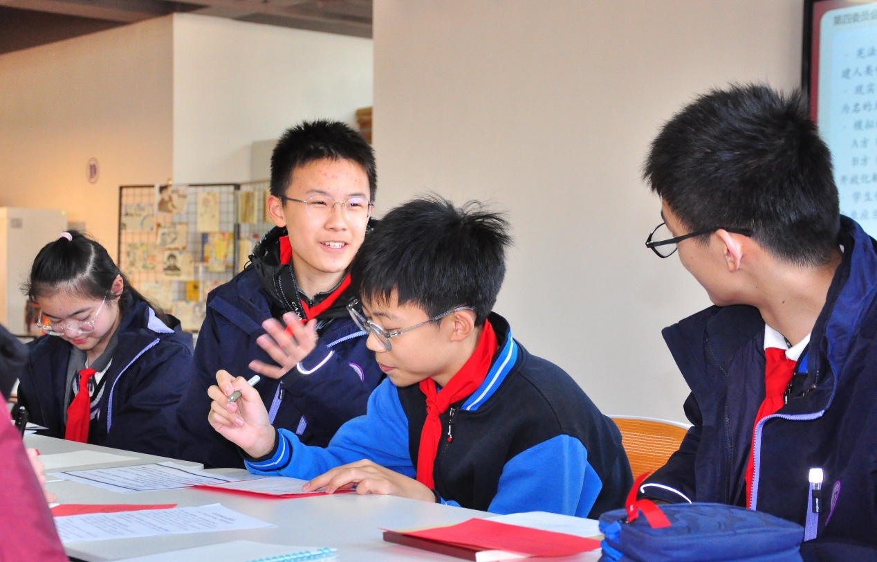 诵读结束后,学校团委、少先队也组织了团员和大队委员进行深入的小组学习。 以“沉浸式决策模拟”为核心逻辑,引导学生从“被动聆听者”转变为“主动建言者”,完成一次对宪法序言的深度理解和价值内化。同学们通过对现实议题的讨论来理解宪法序言的内涵,通过填写《“青春与宪法同行”宣言书》,将课堂所得固化为个人的认知、思辨收获与行动承诺。