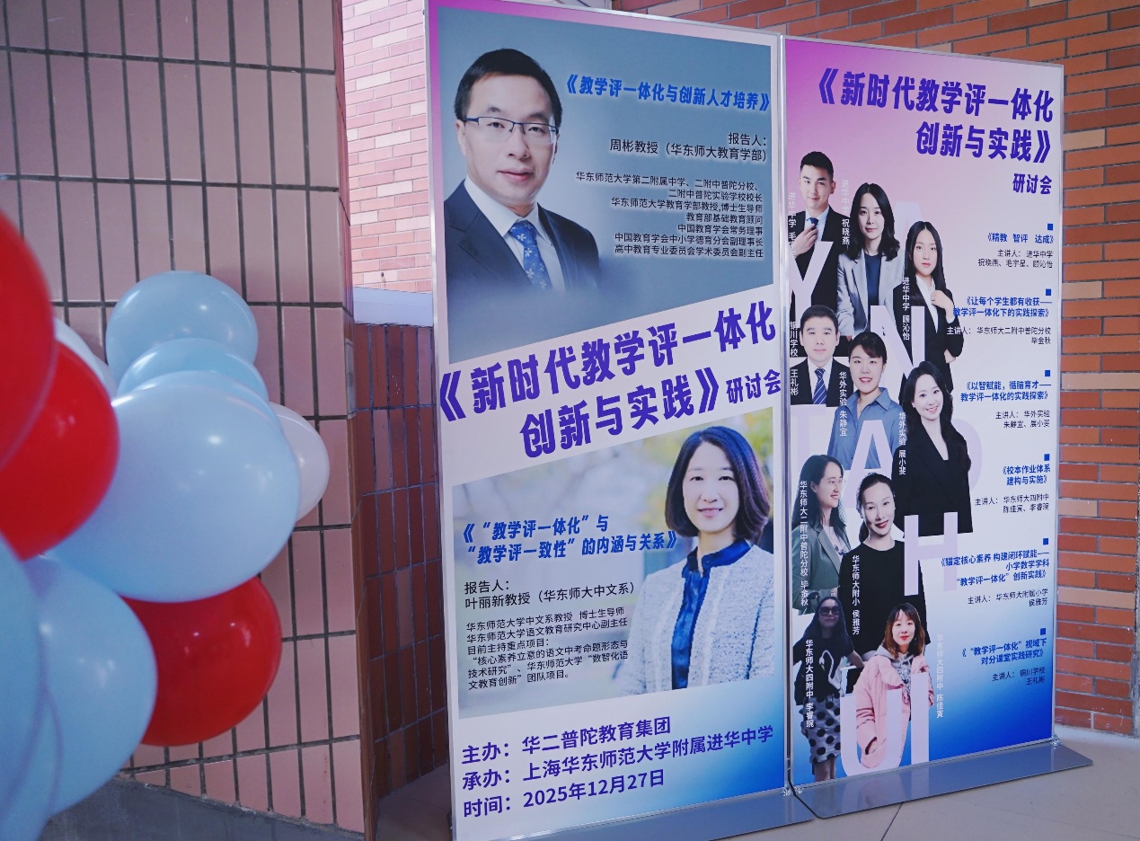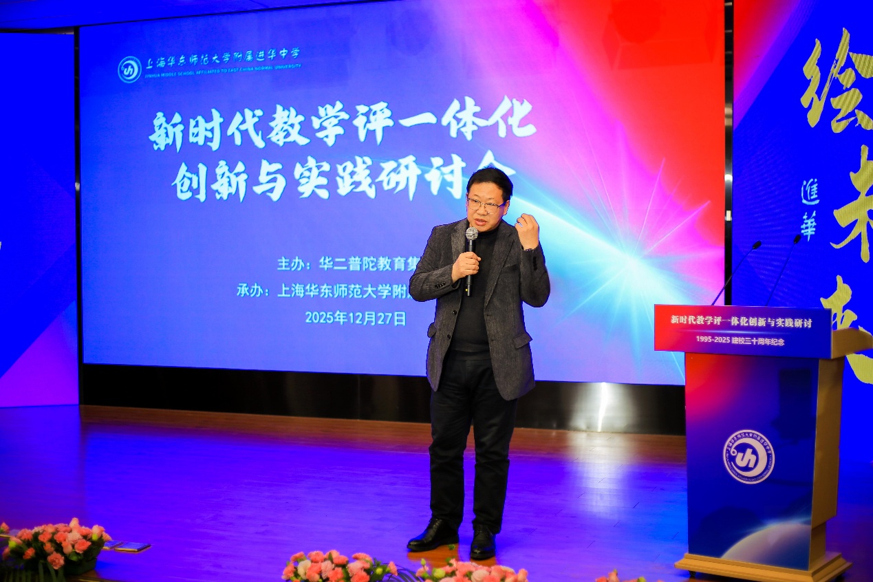 2025年12月27日上午,由华二普陀教育集团主办、上海华东师范大学附属进华中学承办的“新时代教学评一体化创新与实践”研讨论坛在我校博学楼报告厅顺利举行。论坛汇聚集团内各成员校领导、教师代表及华东师范大学专家学者,共同围绕教学评一体化改革展开深入研讨与交流。
