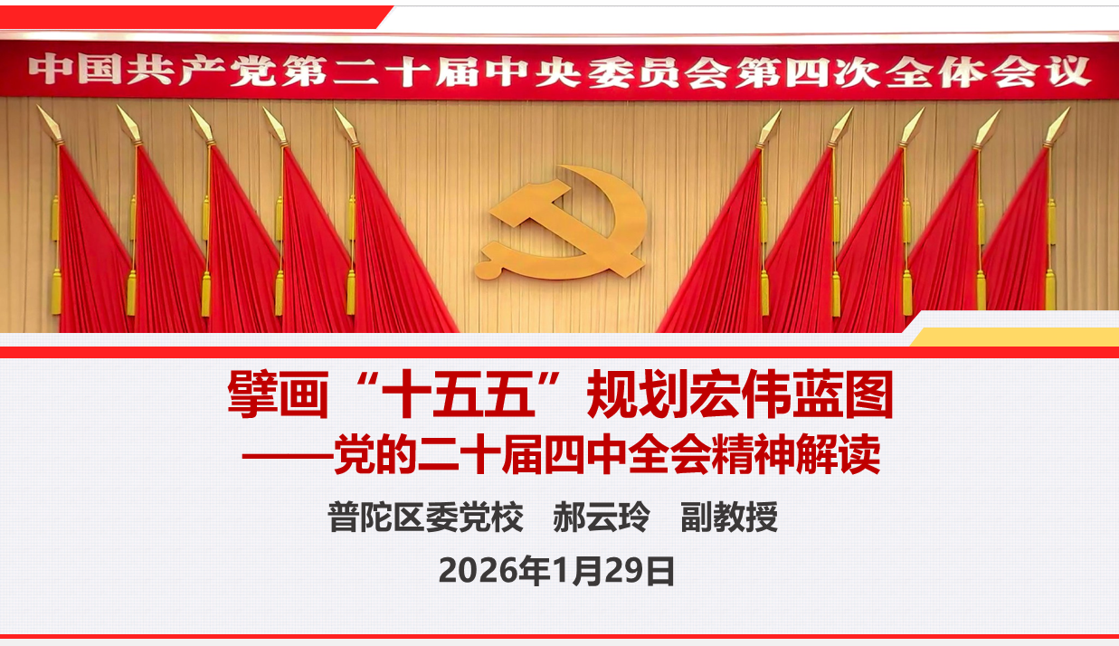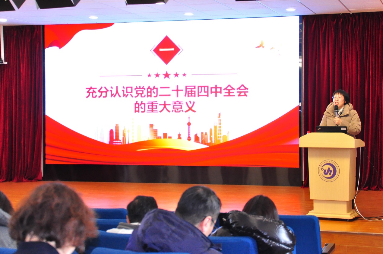 在加强业务能力建设的同时,学校高度重视教职工思想政治素养的提升。学期末,学校特邀普陀区区委党校郝云玲副教授为全体教职工做了关于学习党的二十届四中全会精神的专题讲座。此次学习帮助大家深刻认识到“十五五”时期在全面建设社会主义现代化国家进程中的承前启后意义,以及教育在推动高质量发展、服务中国式现代化中的重要作用。